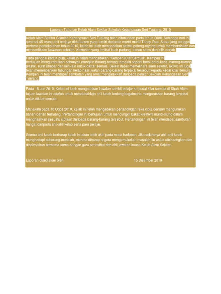 Laporan Tahunan Kelab Alam Sekitar Sekolah Kebangsaan Seri Tualang