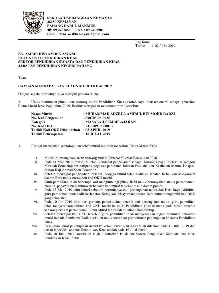 Surat Rayuan Emk Adzrul Amirul PDF